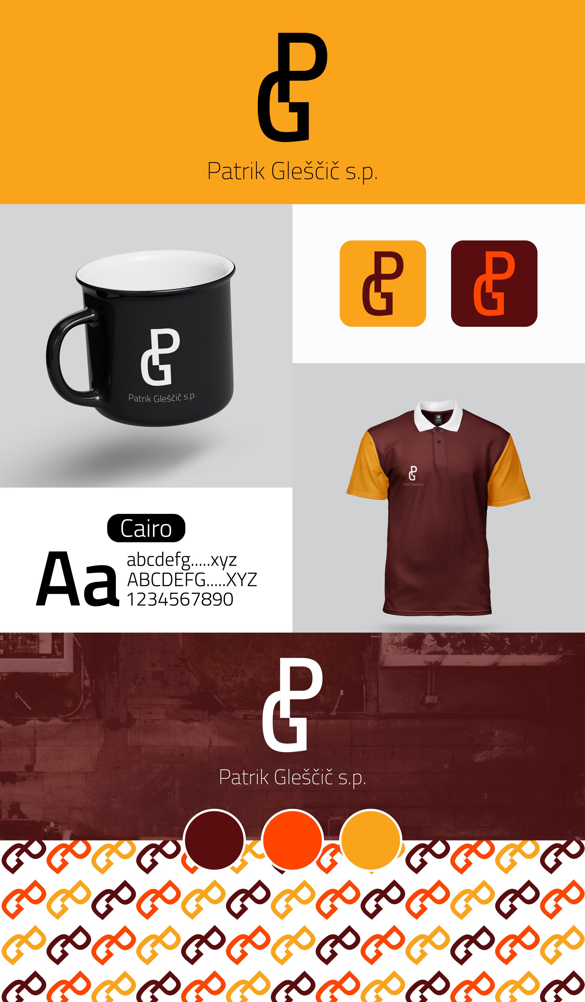 Oblikovanje logotipa za samostojnega podjetnika Patrika Gleščiča, ki se ukvarja s servisiranjem peči. Logotip je monogram začetnic njegovega imena in priimka, poleg tega pa se z linijo tudi elegantno povezuje v skladno obliko.